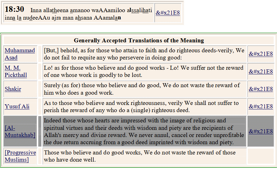 18: 30. As to those who believe and work righteousness, verily We shall not suffer to perish the reward of any who do a (single) righteous deed.