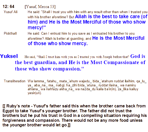 ...وَهُوَ أَرْحَمُ الرَّاحِمِينَ ﴿٦٤﴾